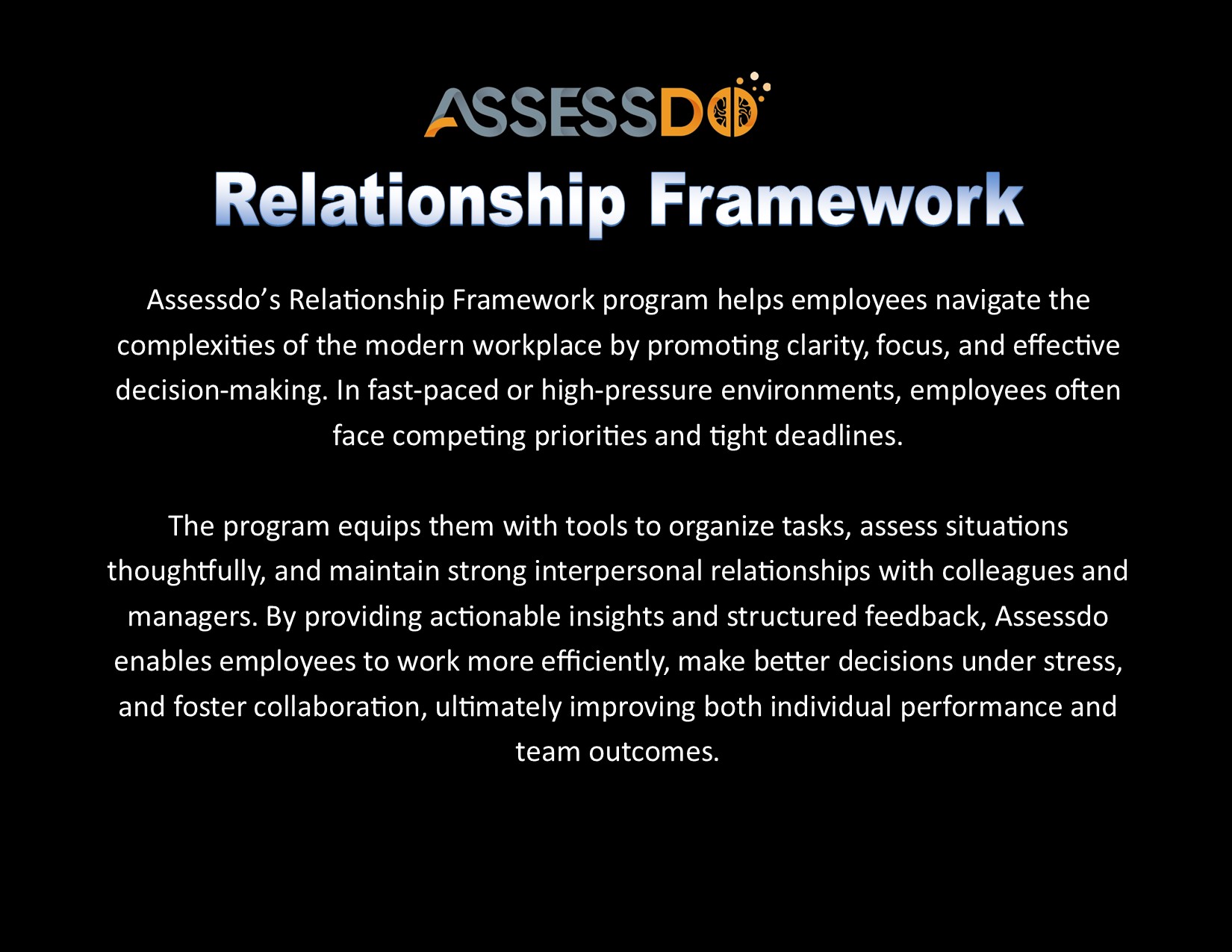 While Generative AI can provide health tips, Assessdo gives real-time wellness intelligence behind each employee and team, detecting burnout, stress, and engagement drops before they hurt performance. Our system equips large organizations with real-time emotional check-ins and anonymous wellness data to support employee and team well-being. It identifies early signs of stress, burnout, or disengagement and alerts HR, enabling timely, proactive support at scale.